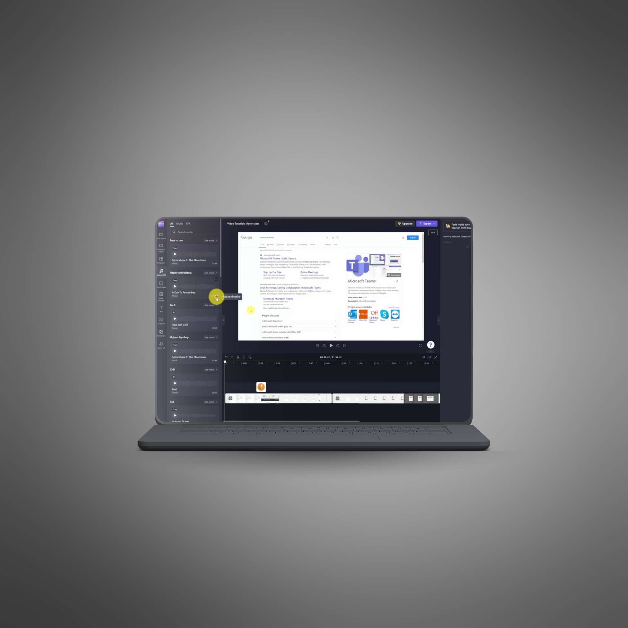 - Explore Clipchamp’s library of stock videos and images to enhance your projects.